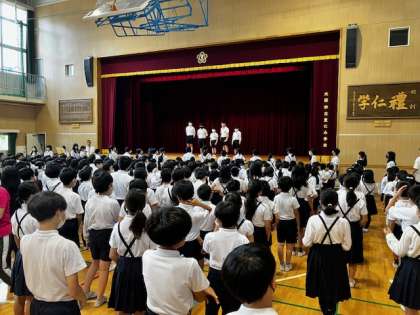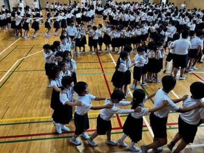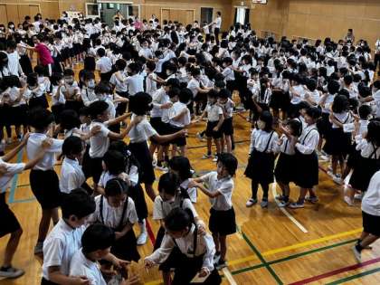 今回は「ジャンケン列車」です。ジャンケンをして負けたら後ろにつながっていきます。どんどん、どんどん連結します。一度も負けない人は、ずっと先頭です。