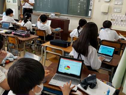 今日は、タブレットを使ってそれぞれが調べ学習をしています。
