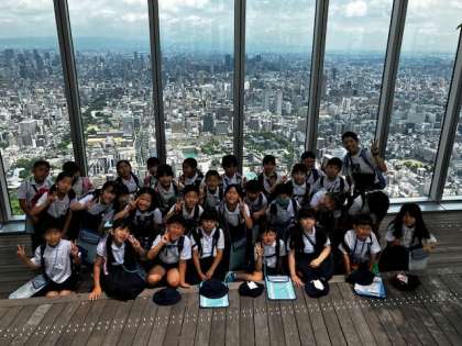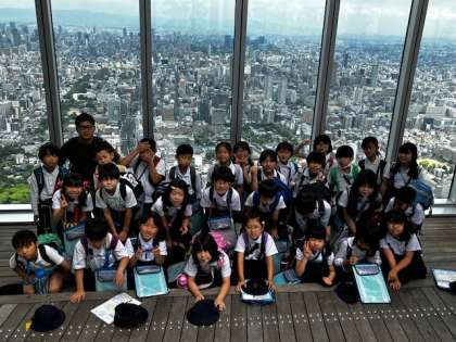 58階の展望デッキでクラスごとに記念撮影をしました。