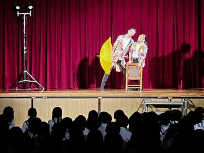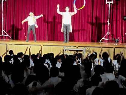 今日は、午前中に1〜4年生の芸術鑑賞会を行いました。毎年、北区の事業で内容を変えて行っていただいています。