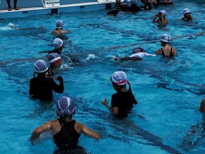 夏日のような暑い日となりました。1年生の子どもたちは「プールに入りたい〜!」と遊びに行くように楽しみにしてプールにやってきました。