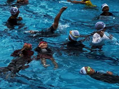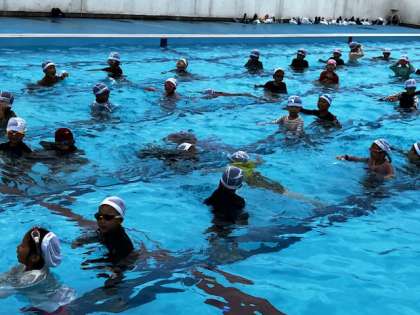 1年生は初めてなので、水着の上に服を着るだけで、もう楽しくて、着衣でプールに入ると大喜びです!