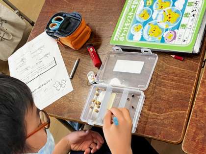 字の通り、あずきの方が小さいのですが、だいずよりもつかみやすいようです。子どもたちは、「大豆は大きくて丸いのでつかみにくい」と言っていました。