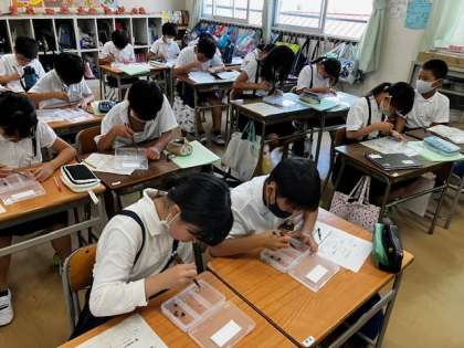 今週は「正しい箸の使い方週間」です。食育の一環で、おはしの使い方を全校児童で確認、練習しています。