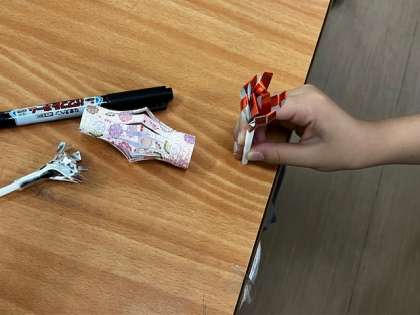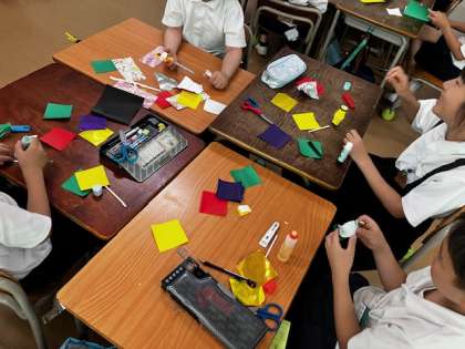 2年生の教室では、前から作ってきた七夕飾りの最終制作をしています。