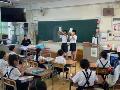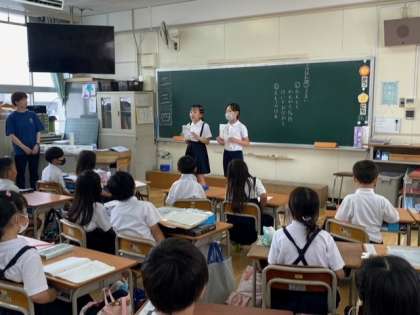 今朝から保健委員会の児童らが保健目標を発表しに各担当教室に行きました。