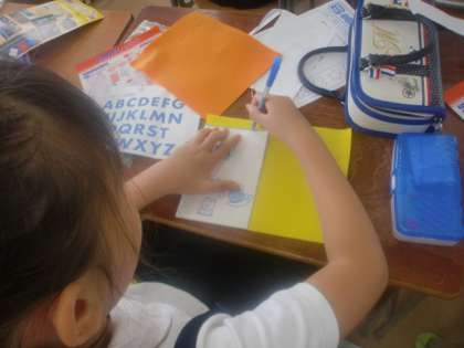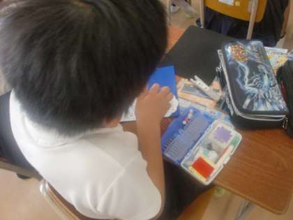 フェルトの布を使って、小銭入れや、ペンケース、ブックカバー、ティッシュペーパー入れなどの小物をつくります。それぞれにデザインを工夫して自分だけのものを作っていました。