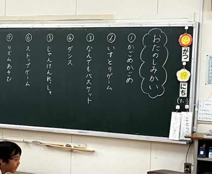 午前中は、小学校定番の「お楽しみ会」や、これまた定番の「やつやすみのくらし」という休み中の手引きを担任の先生と見たりしています。