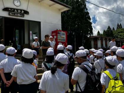 食後、宿の前で開舎式をしました。宿の方から、山の上の生活についてお話ししていただきました。