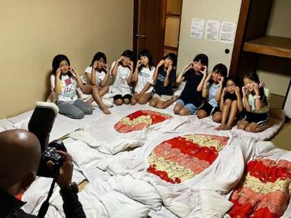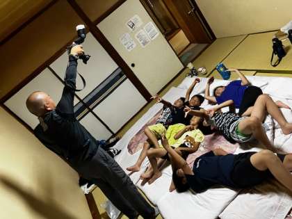 就寝前、恒例の部屋ごとの記念撮影です。