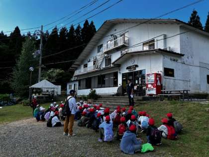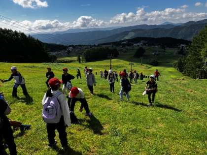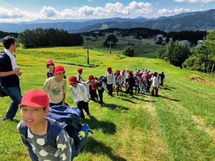 けっこう急な傾斜が長い道を歩きます。景色、最高!