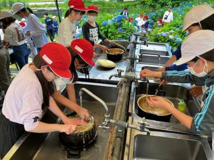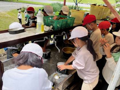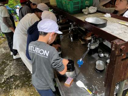 どこへ行っても恒例の鍋・飯ごう磨きが始まっています。
