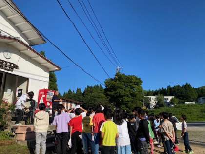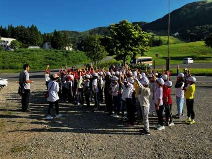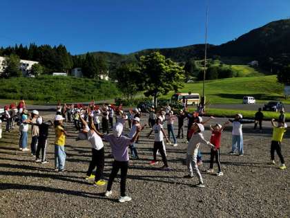 ラジオ体操、校長先生からのお話、担任の先生から今日の予定の連絡。