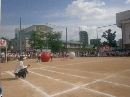(下)2年生 団体競技「大玉ころがし」