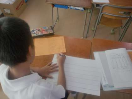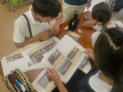 玄関に掲示する新聞の作成をしています。今回の特集は「運動会」です。写真が多いので選ぶのに苦労していました。