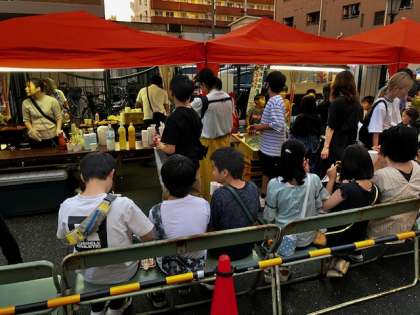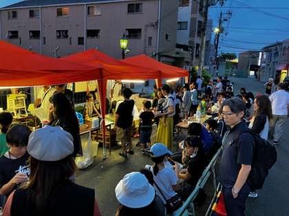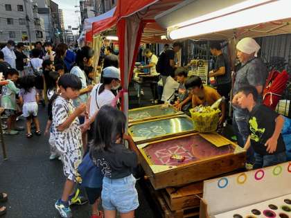 お賽銭をしてお地蔵さんを拝んで、お菓子をもらいます。その後は、チキンライスやかき氷、フランクフルトをもらって、ゲームをして景品を貰います。