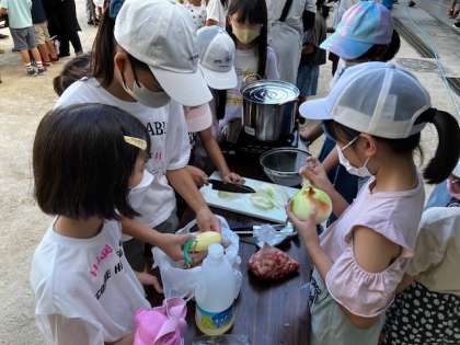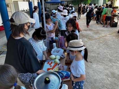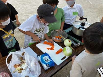 包丁、ピーラーで材料づくりをしています。見ている方は、ハラハラドキドキですが、結構、どの子もしっかりと安全にできています。