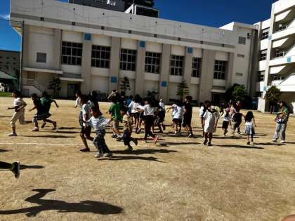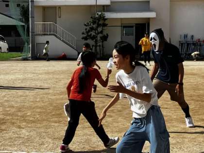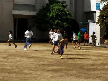 最後は、大おにごゲームです。卒業生と大人が鬼となって、さらわれた校長を救出するために、子どもたちが鬼に捕まらずに助け出します。