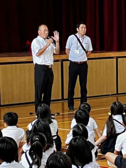 また、今日から教育実習に来られる先生、そして、これから当分の間、取材に入ることになった毎日放送の方々を紹介しました。