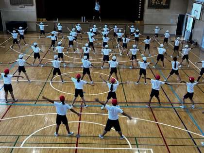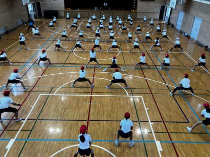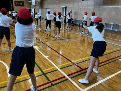 5年生では「ソーラン節」を披露します。その練習が始まっています。最初は一つ一つのフレーズを聞いて、その動きを練習していきます。