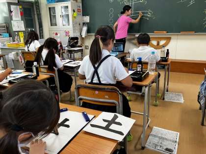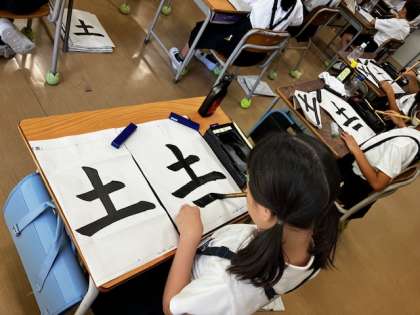 3年生の国語、書写の時間です。今日は「土」の字を書きます。