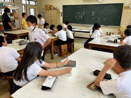 今日は水曜日、月に一度の委員会活動の日です。どの委員会も、今回は運動会の準備の取組みです。放送や用具、得点板、掲示物、スタート等々、各委員会ごとに運動会での役割が学習委員会に当てられています。