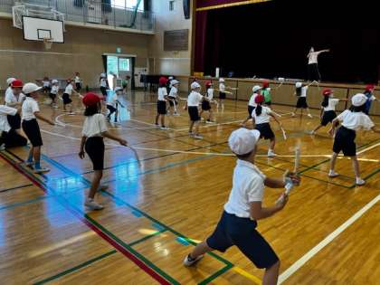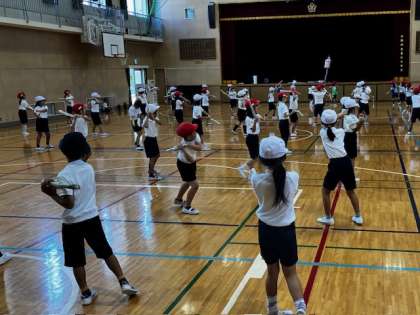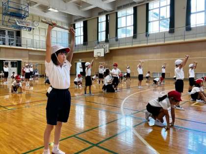 2年生の運動会団体演技の練習です。「アイドル!!みんなが主役だ!!」の演技は、開会式、全員での応援合戦の後、一番目のプログラムです。
