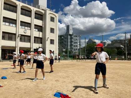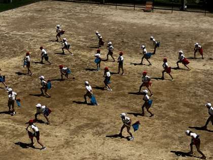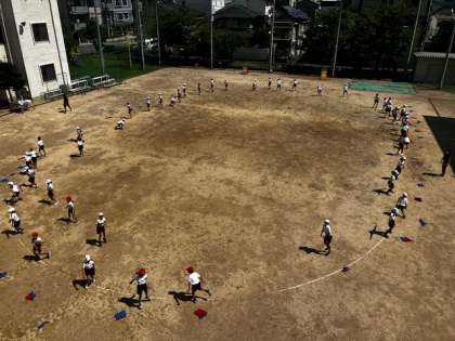全員がフラッグを使いながら、運動場いっぱいに動いてダンスを披露します。