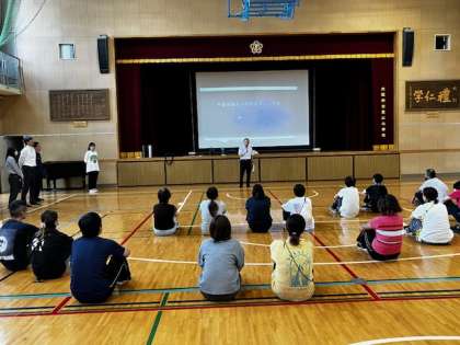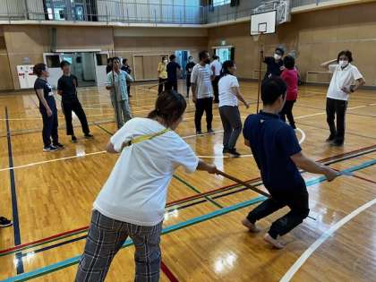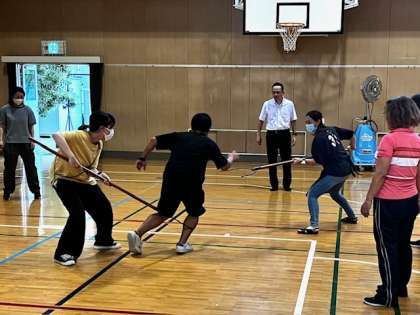 放課後、大淀警察署から警察官の方々に来ていただいて、不審者対応の方法や、犯罪者に対しての「さすまた」の使い方を教えていただきました。