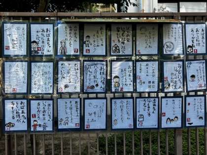 感心する句や感動する句、楽しい句、吹き出してしまう句、色々です。玄関横の塀に掲示していますので、ぜひご覧ください。