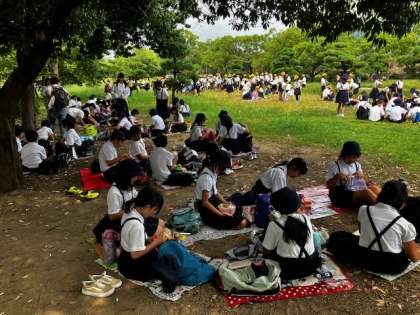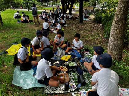 NHKホールを出て、すぐの大阪城公園でお弁当を食べました。
