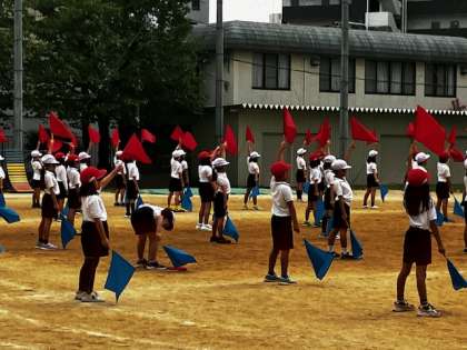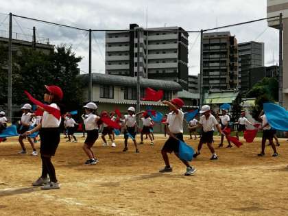 3年生の運動会学年演技の練習です。「Monster Dance」の仕上げに入っています。一人一人の動きにハリとキレが出てきて、全体の動きに迫力が出ています。