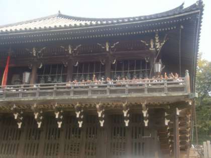 (下)お水取りの大松明で有名な二月堂に上りました。