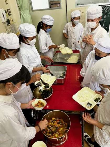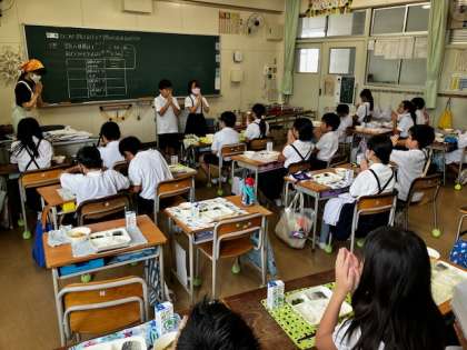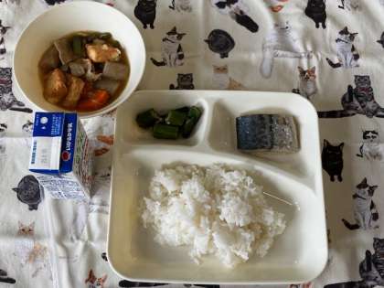 今日の給食献立は、ごはん・さごしの塩焼き・オクラの炒め物・含め煮・牛乳です。