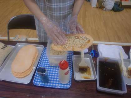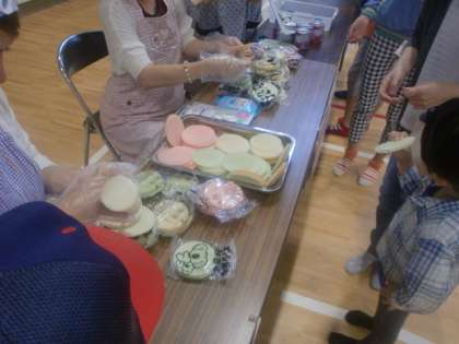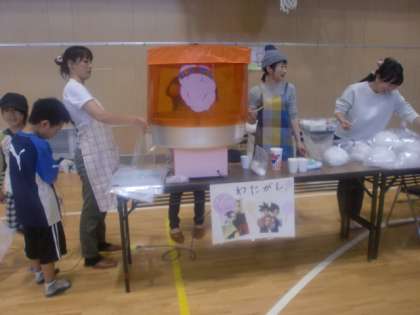 講堂では、ジュース、コーヒー、かき氷、タコせん、ミルクせんべい、綿菓子、ポップコーンなど食べ物のお店が出ていました。