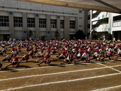 日曜日に開会式をしたので、開会式抜きで、準備体操から始めました。