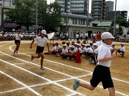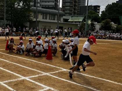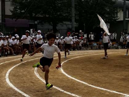 徒競走です。コースを一周します。4年生になると、速さもさすがですね、迫力があります!