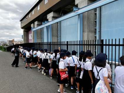 水門と閘門(こうもん)を見学しました。閘門は、船のエレベーターです。淀川と大川かっこ(旧淀川)の行き来をする時に使います。