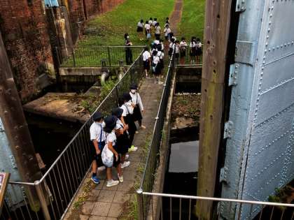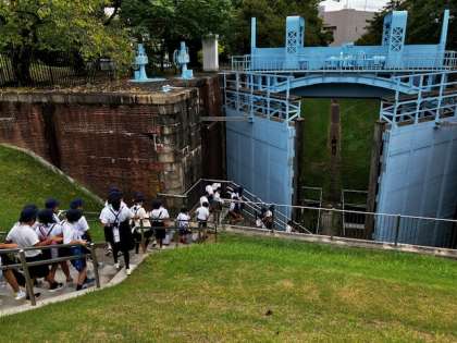 明治時代に作られた旧閘門。現在の閘門と同じ役割をしていました。最初は手動だったそうです。すれもすごい!