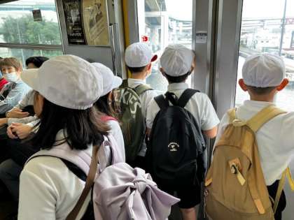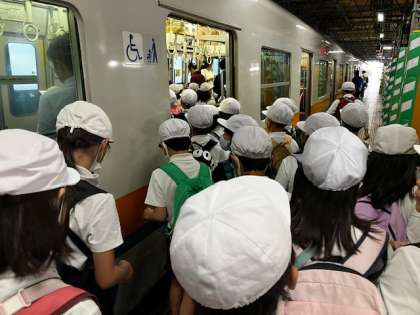 予定通りの時間のメトロで学校に向かいます。子どもたちは疲れも見せずに、機嫌よく整然と乗車しています。