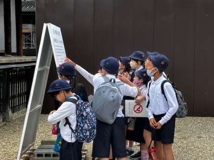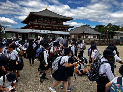 五重の塔の前から班ごとに分かれての活動です。40分間でいくつかのミッションをこなします。
