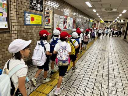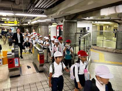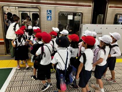 今日は、1年生の秋の遠足です。大阪城公園に行きます。いい天気で、遠足日和です!