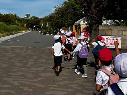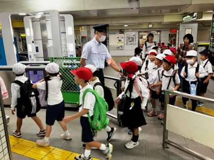 森ノ宮駅で降りて、子どもたちが「頑張って〜!」と駅員さんに声をかけていました。