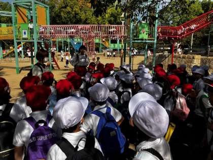 遊具広場に着くと、先客さんがたくさん遊んでいて、少し驚いています。