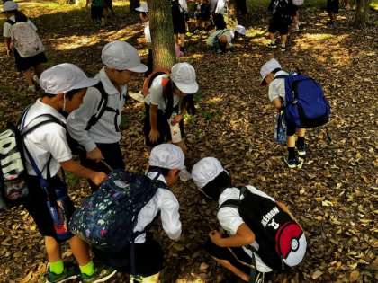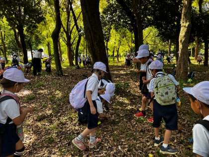 途中の森の中で松ぼっくり拾いをしました。虫や実などもいっぱい見つけました。