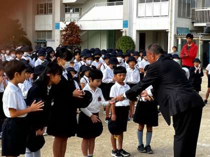 最初に、中国から転入してきた児童の紹介をしました。自己紹介では名前と「ダンスが好きです」と上手に日本語で話すことができました。
