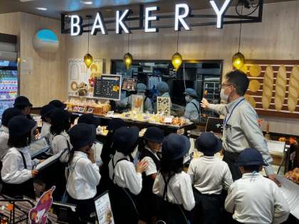 ライフの中を副店長さんが各売り場や施設について説明してくださいます。