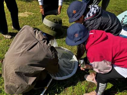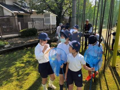 5年生の理科の授業で「生きもの探し」をしました。1学期には夏の生きもの、今回は秋の生きもの探しです。