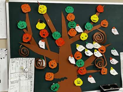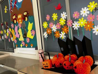 いきいき教室の飾りがハロウィンになってます!3年生の教室にもありました!