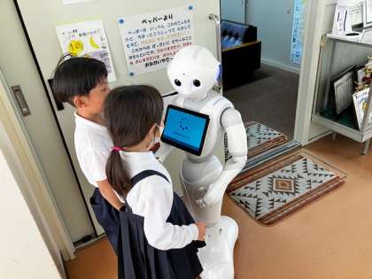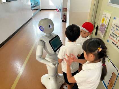 ペッパーさんは、今も毎日、休み時間ごとに大人気です。